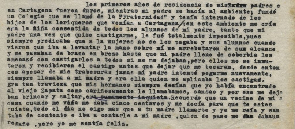 “Allí se llenaron mis ojos de todo el folclor nativo, compartiendo con aquellas gentes ratos y haciéndome de amigos que se complacían contándome sus historietas, felices de mi atención, pues todos sabían que era la hija del doctor Zapata”.